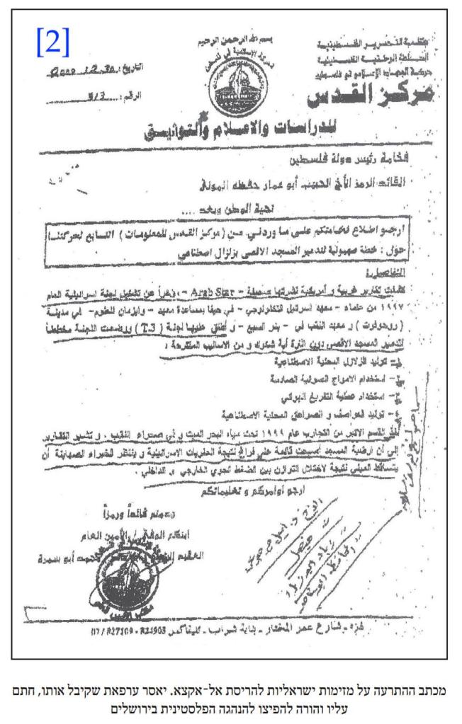 מאז חזרו על השקר הבלתי מבוסס הזה ראשי ההנהגה הפלסטינית שוב ושוב, ושיסו כך את הפלסטינים בישראלים בתואנת שווא שהנה, עכשיו היהודים מתכוונים לפגוע במסגד אל אקצא ועלינו למנוע מהם לעשות זאת בכל מחיר. כך למשל, בשנת 2002 קצין מודיעין בכיר בפת״ח שלח מכתב ליאסר ערפאת ובו הוא מיידע אותו על ״תכנית ציונית להרוס את מסגד אל אקצא באמצעות רעידת אדמה מלאכותית״ (המכתב, חתום בכתב ידו של ערפאת). מכתב זה הועבר בשיא האינתיפאדה השנייה (שכונתה למרבה ההפתעה אינתיפאדת אל אקצא) וסייע בליבוי האש ובהסתת הפלסטינים לפגע באזרחים ישראלים. השקר הזה מתקדם איתנו לאורך השנים, בדרשות המסגדים וביתר שאת היום ברשתות החברתיות. הים אותו ים והשקר אותו שקר.