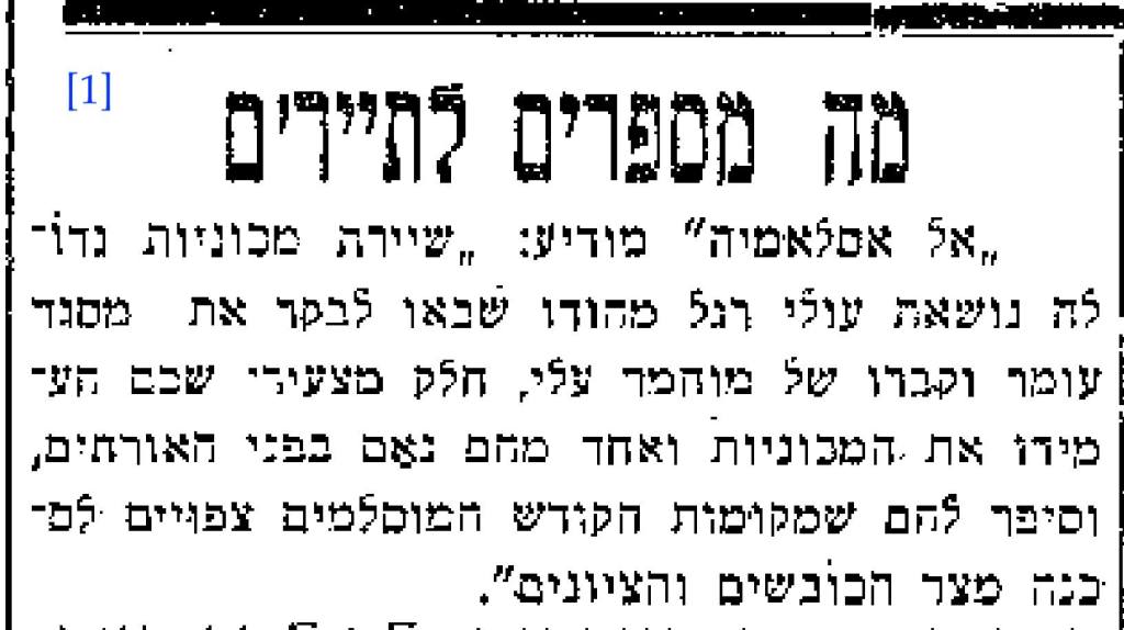 אחד העניינים המרכזיים שעזר לייצר את הנרטיב הלאומי הפלסטיני יש מאין הייתה העלילה לפיה מסגד אל אקצא בסכנה. הוגה הרעיון היה המופתי של ירושלים, חאג׳ אמין אל חוסייני. המופתי כתב כבר בשנת 1928 (כ48 שנים לפני שאיתמר בן גביר נולד): ״כאשר היהודים ישתלטו על ירושלים, הם ישמידו את המקומות הקדושים לאסלאם, בראש ובראשונה, את מסגד אל אקצא״. דברים אלה היוו מניע מרכזי למאורעות תרפ״ט שביצעו הערבים בבני ההתיישבות היהודית בארץ ישראל, שגבו את חייהם של 133 יהודים ברחבי הארץ. גם משלחות תיירים שהגיעו לארץ ישראל קיבלו מנה יפה של תעמולה שקרית (כתבה מעיתון דבר בשנת 1931).